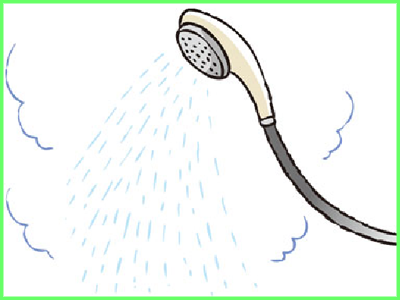 45℃以上の湯を使うとあらゆるカビは死ぬといわれています。湯をかけた後に水を掛けて浴室内の温度を下げて、高温多湿を避けます。