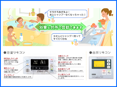 次に、入浴している最中、外の家人と会話ができます。たとえば、「石けんがなくなったので、持ってきて」とか「そろそろ子供が上がるよ」といったことを知らせることができるわけなのです。