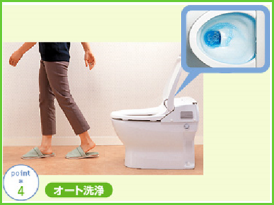センサーで入室と退出を感知し、人が出ていった後に必ず便器の水が流れるようになっています。それが、オート水洗です。