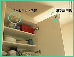 耐震ラッチを扉に付ける最大の目的は、大地震が起きたとき、揺れで扉が勝手に開くのを防ぐためです。キッチンの上部吊り戸棚はスペースが大きいため、色々なものが入れられます。重い鍋類を入れているお宅もあるでしょう。耐震ラッチは、それらが飛び出すのを防いでくれます。