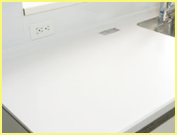人工大理石にはポリエステル系とアクリル系があり、高級なのはアクリル系になります。アクリル系の人工大理石は値段も高いのですが、表面をサンドペーパーなどでこすっても模様が消えないなどの長所があります。