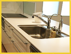 人造大理石は丈夫そうに見えますが、熱い鍋などを置くと変色・変質の原因になりますので避けましょう。