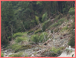山などの斜面で以下の現象が発生している場合は、すみやかに斜面から離れましょう。