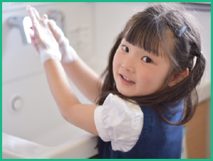 手についた泥を落としたり、風邪やインフルエンザの予防ができ、綺麗な状態で入室できるのでご家族も安心です。